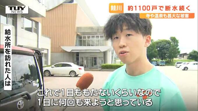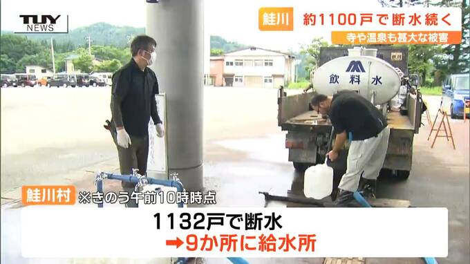 松浦亜実 記者「記録的な大雨から5日目、鮭川村ではいまも断水が続いていて村では給水所を設置して対応にあたっています」