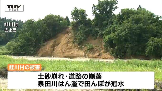 山形県鮭川村では、土砂崩れや道路の崩落のほか、村を流れる泉田川が氾濫し、田んぼが冠水するなどの被害が出ています。