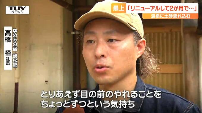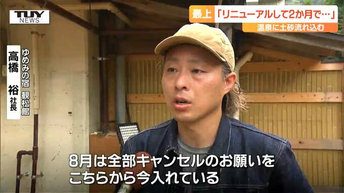 ゆめみの宿 観松館 高橋裕 社長「きょうやっと排水が通ったので、水が抜けて(作業が)はかどっている。8月は全部キャンセルのお願いをこちらから今入れている」