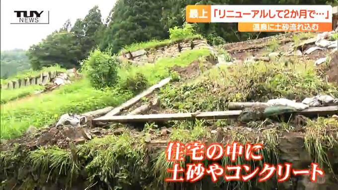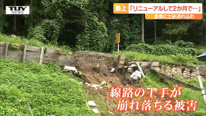 「やれることを、ちょっとずつ」リニューアルしたばかりの浴場に土砂崩れ…老舗温泉旅館で復旧作業続く(山形・最上町) 2024年7月30日(火) 17:52 国内 また、瀬見温泉近くを取材すると、線路の土手が崩れ落ちる被害も確認できました。 付近の住宅の中には土砂やコンクリートなどが窓ガラスを割って入ってきたということです。 この地区では、まだ手付かずの状態のところも多く、人の手での作業が続けられています。