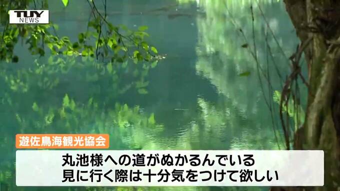 遊佐鳥海観光協会は、丸池様に通じる道がぬかるんでいるところもあるため、見に行く際は十分気を付けて欲しいと話しています。