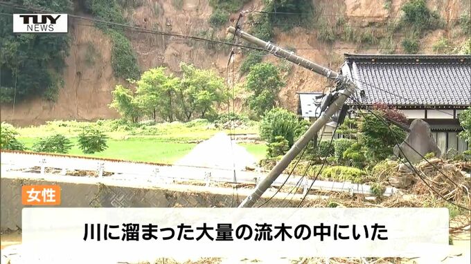 女性は川に溜まった大量の流木の中にいたことから救助は難航しました。