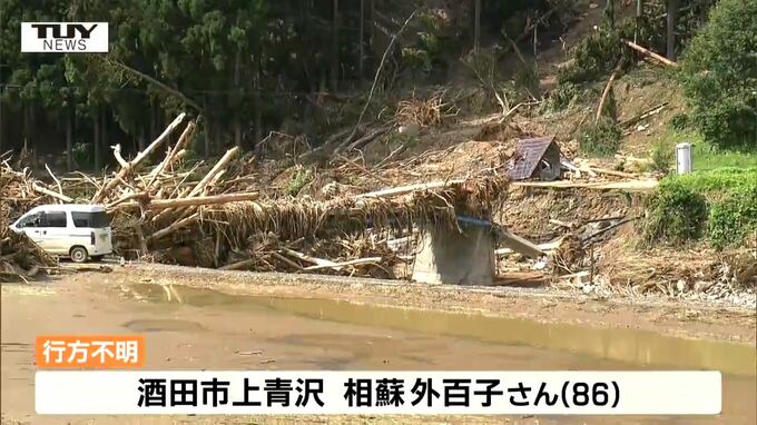 酒田市では、86歳の相蘇外百子(あいそ・ともこ)さんが、先月25日に大雨のため避難所に向かう途中に行方がわからなくなっていて、現場では、捜索が行われていました。