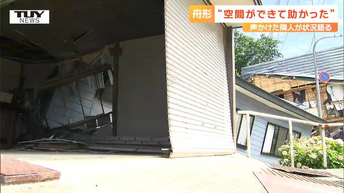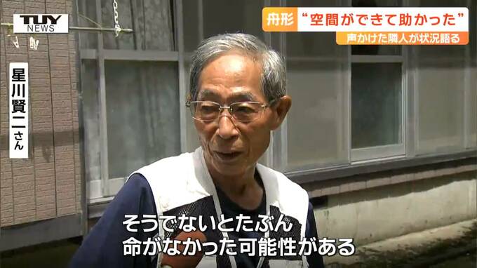 倒壊した家の隣に住む 星川賢ニさん「壁を突き破って、家の2階の角が基礎コンクリートの上にのったから、(1階)に空間ができた。そうでないとたぶん命がなかった可能性があると私は思う」