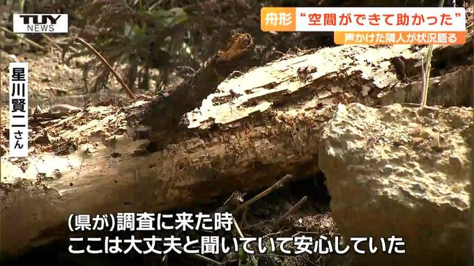 倒壊した家の隣に住む 星川賢二 さん「町のハザードマップで危険区域となっているが、(県が)ここに調査に来た時ここは大丈夫だと聞いていて、みんな安心していた。まさか災害が起きるとは誰も思っていなくて」