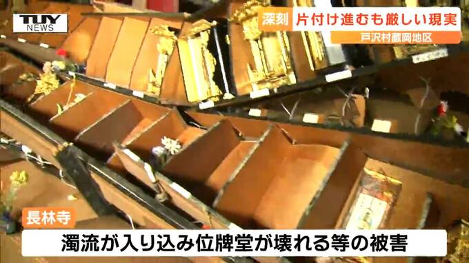 ここ長林寺は、濁流が入り込み位牌堂が壊れるなど甚大な被害を受けました。お盆には間に合わせたいと、毎日、ボランティアや檀家などと一緒に復旧作業をしているそうです。