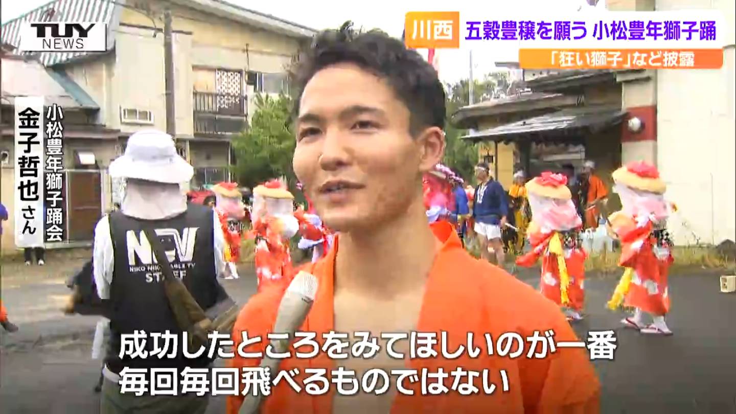 小松豊年獅子踊会 金子哲也 さん「成功したところをみてほしいのが一番だが、毎回毎回飛べるものじゃない、簡単じゃないって思ってもらえたらなと」
