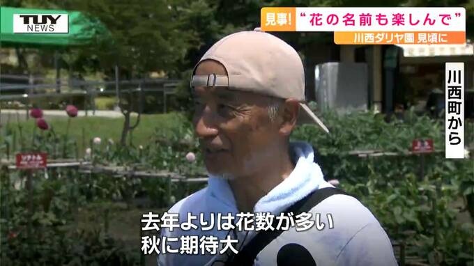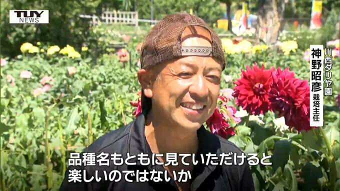 川西ダリヤ園 栽培主任 神野昭彦 さん「ようやく(2年前の大雨被害から)日常を取り戻したっていう感じもありますんで、恋愛物語にちなんだものや某アニメのキャラクターの名前の品種名がある。とにかく色々な方に来ていただいて品種名もともに見ていただけると楽しいのではないかと思います」