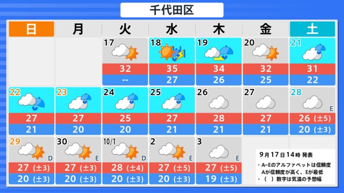 【台風情報】台風14号(プラサン) 沖縄本島・奄美地方などに接近する見込み 台風進路予想・各地の天気は 2024年9月17日(火) 14:29 国内 ■東京の長期天気は 東京都の今後の予測(TBS NEWS DIG Powered by JNNより) 東京都の今後の予測(TBS NEWS DIG Powered by JNNより)