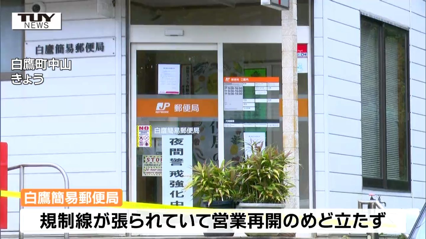 白鷹簡易郵便局はきょうも規制線が張られていて、営業再開の目処は立っていないということです。
