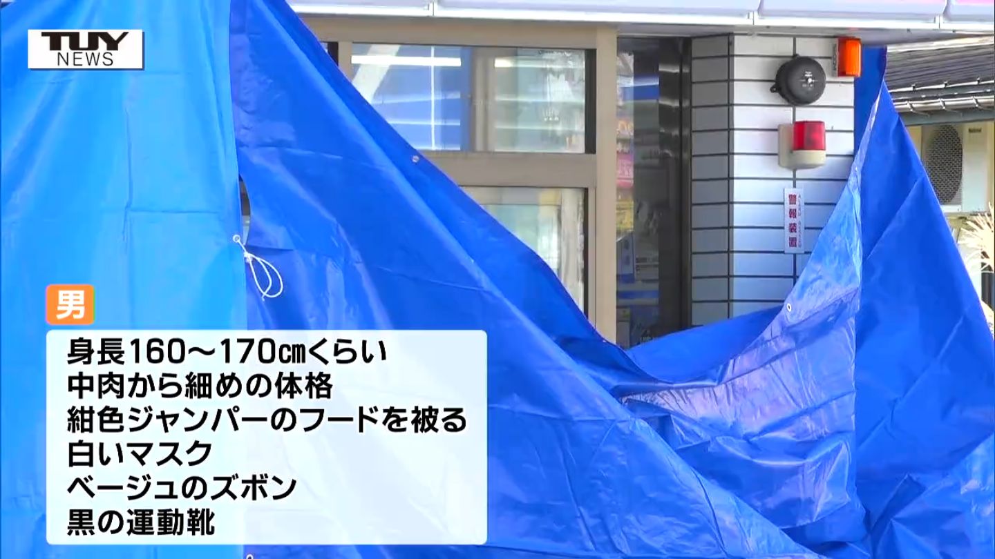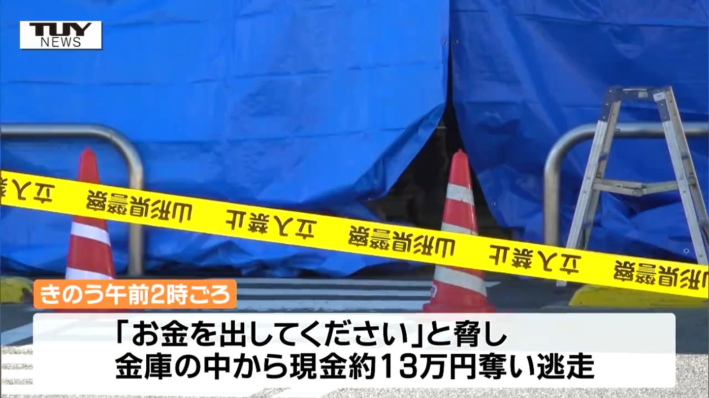 この事件は、きのう午前2時頃、高畠町のコンビニエンスストアに男が押し入り、女性店員に向けてタオルに巻いた刃物のようなものを突きつけ、「お金を出してください」と脅し金庫の中から現金およそ13万円を奪い、逃走したものです。