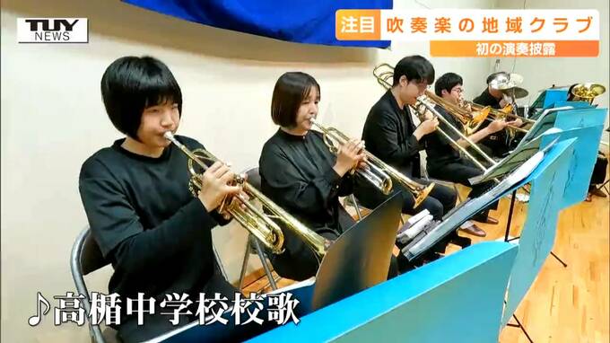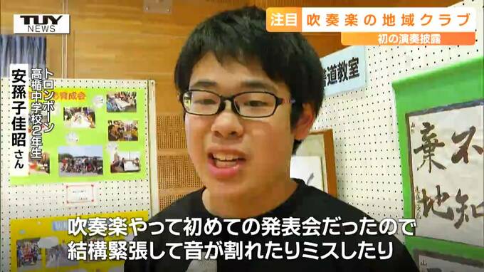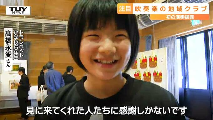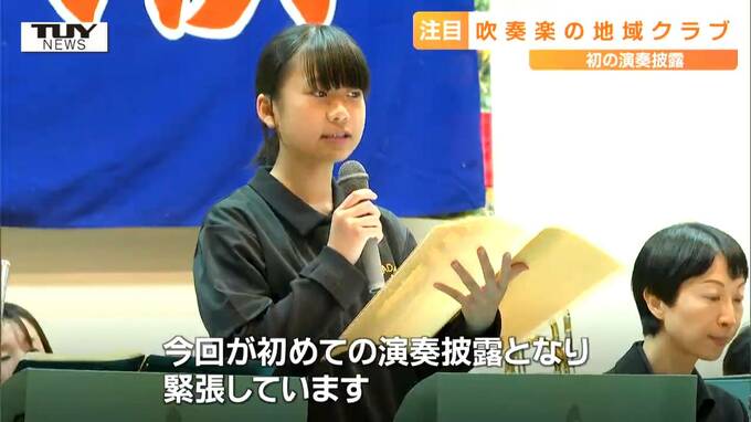 「私たちは『たかだて吹奏楽クラブ』です。今回が初めての演奏披露となり、緊張しています。少しでも楽しんで聴いていただけたらうれしいです」