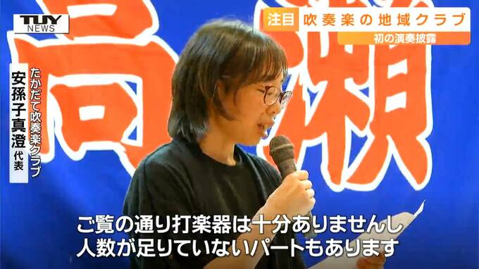 安孫子真澄 代表「『たかだて吹奏楽クラブ』のモットーは『できることをできる範囲で』です。ご覧の通り打楽器は十分ありませんし、人数が足りていないパートもあります」