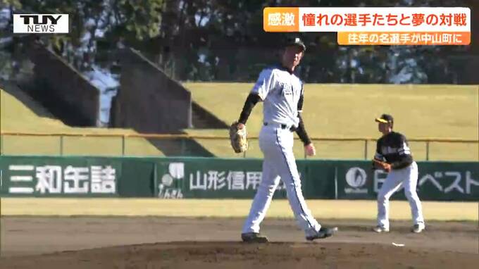 投げては日本ハムでパリーグ・MVPにも輝いた先発・吉川光夫さんの140キロ近い快速球を前に中山町選抜チームはランナーを出すことが出来ません。