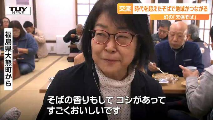福島県から「そばの香りもして、コシがあって、すごくおいしいです。幻のそばで、天保年間を想像しながらいただきたいと思います」