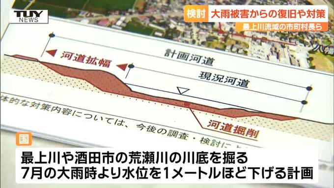 戸沢村や酒田市を中心に、最上川や酒田市の荒瀬川の川底を掘るなどすることで水が流れる面積を広くし、7月の大雨の際の最大水位から1メートルほど水位を下げる計画です。