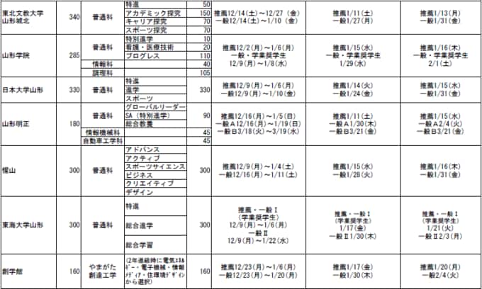 2025年実施 山形県内の私立高等学校の入学テスト 高校入試日程・定員等詳細情報 2024年12月13日(金) 14:49 国内 県は、令和7年度の山形県内私立高等学校入学者選抜試験実施日程についてとりまとめた。 詳細は画像にてご確認いただきたい。 ■村山地方
