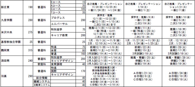 2025年実施 山形県内の私立高等学校の入学テスト 高校入試日程・定員等詳細情報