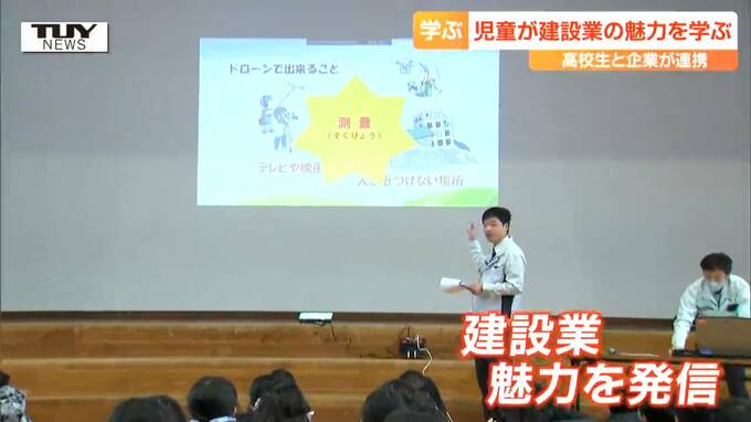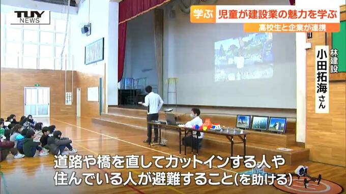 山形県酒田市の小学校で児童に建設業の魅力を知ってもらおうと、出前授業が行われました。