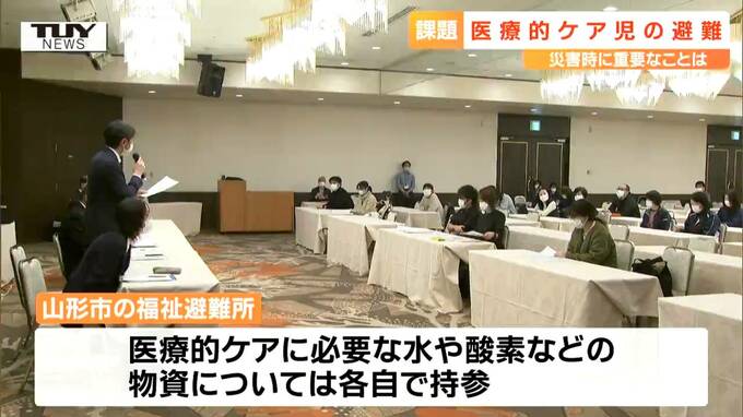 山形市によりますと、福祉避難所には非常用電源が備わっている施設は複数あるといいますが、医療的ケアに必要な水や酸素などの物資については、各自で持っていくことになっています。