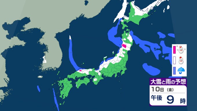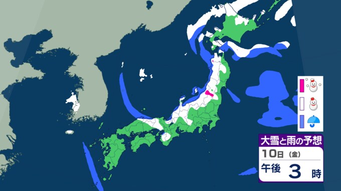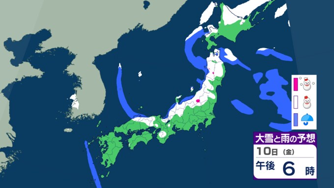 大雪のおそれ いつ・どこで雪が降る?【降雪シミュレーション】9日から10日にかけ東北から西日本の日本海側を中心に警報級の大雪となる可能性 2025年1月7日(火) 16:28 国内 10日(午後)の雪と雨の予報