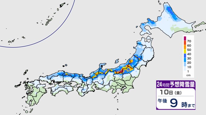 大雪のおそれ いつ・どこで雪が降る?【降雪シミュレーション】9日から10日にかけ東北から西日本の日本海側を中心に警報級の大雪となる可能性 2025年1月7日(火) 16:28 国内 24時間降雪量は 画像ありの記事はこちらから https://newsdig.tbs.co.jp/articles/-/1653255?display=1