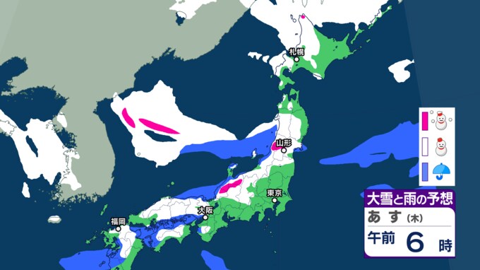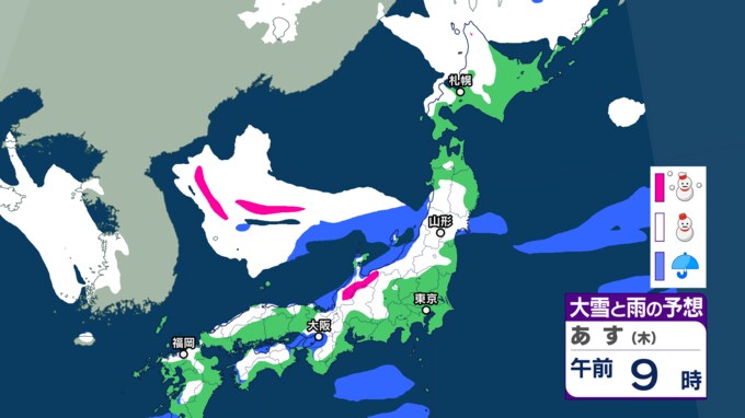 大雪情報 いつ・どこに雪が降る?【降雪シミュレーション・8日午前現在】東日本から西日本では10日にかけて大雪に注意・警戒 東北・山形の今後も 2025年1月8日(水) 11:54 国内 9日(午前)の雪と雨の予報