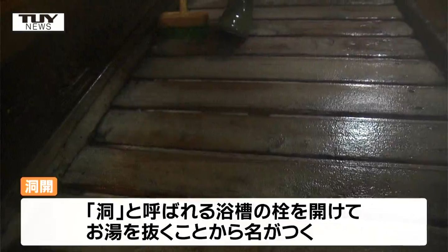 「洞開(どうかい)」は毎年この時期に、温泉という自然の恵みに感謝するために行われていて、「洞(どう)」と呼ばれる浴槽の栓を開けてお湯を抜くことから、その名がついたとされています。