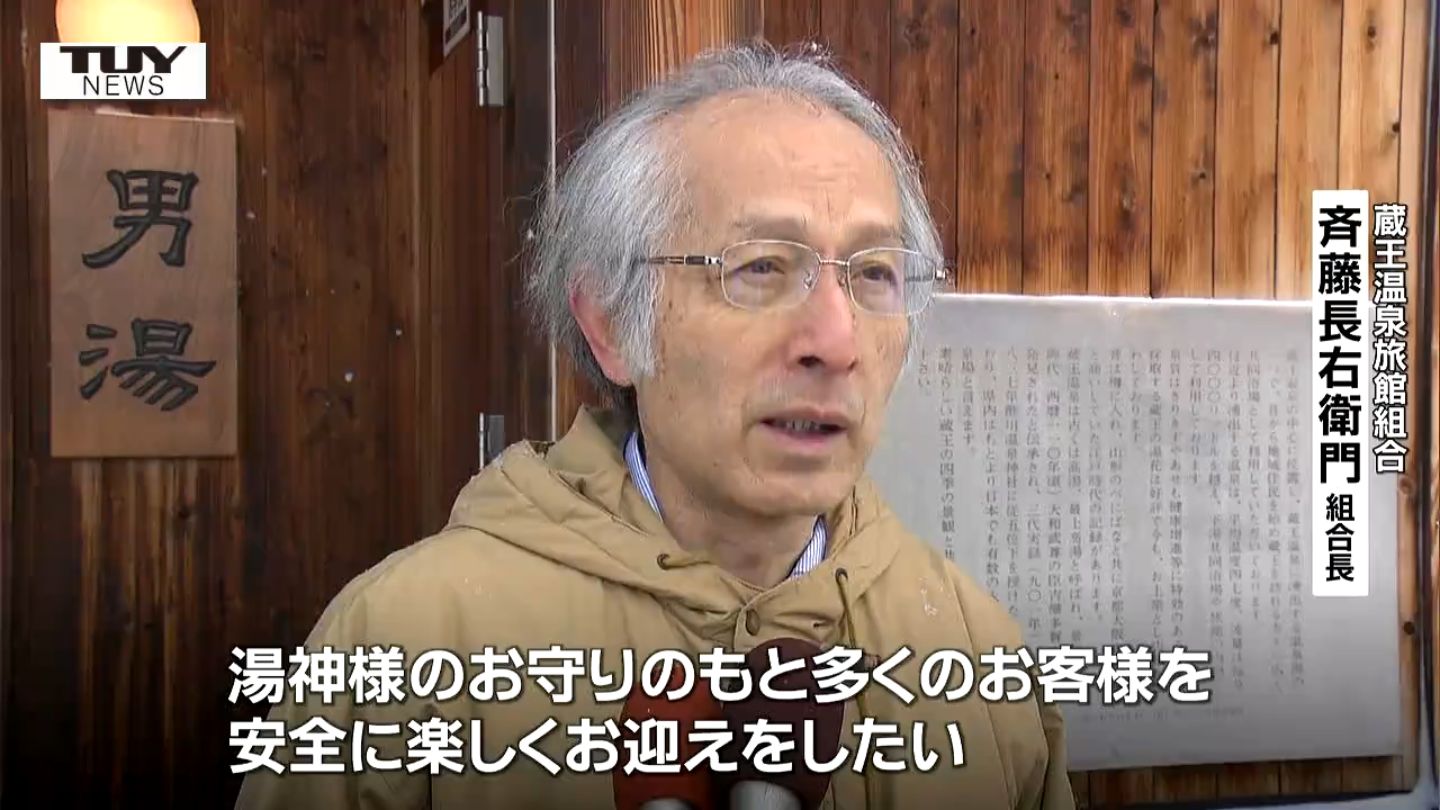 蔵王温泉旅館組合 斉藤長右衛門 組合長「長く伝わる行事ですので、それを終え、ホッとしている。雪にも恵まれ、お客様にも恵まれ、今月下旬はまた春節という大きな山がやってまいりますので、湯神様のお守りの元、多くのお客様を安全に楽しくお迎えをしたいという気持ち」