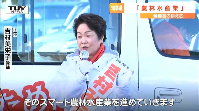 現職 吉村美栄子 候補「農業・林業・漁業もスマート化。デジタル化と言ってもいい。そのスマート農林水産業を進めていきます」