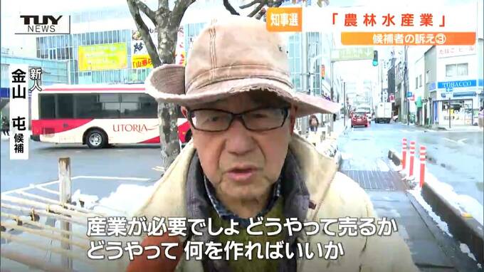 新人 金山屯 候補「農業の人だけで考えたらいいこと出るわけないでしょう。産業が必要でしょ、どうやって売るか。どうやって、何を作ればいいか」