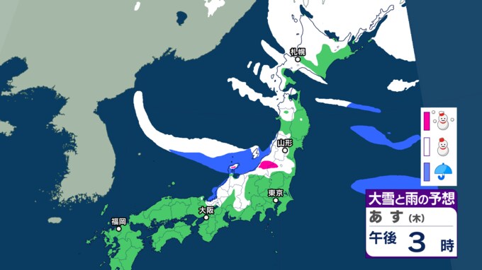 大雪情報 いつ・どこで雪降る?【降雪シミュレーション】東北日本海側南部では30日未明から夕方にかけ大雪に警戒 24時間予想降雪量は? 風・波の予想は? 2025年1月29日(水) 16:34 国内 ■30日(午後)の雪と雨の予報
