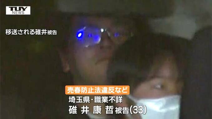 売春防止法違反などの罪に問われているのは、埼玉県に住む職業不詳、碓井康哲(うすい・やすのり)被告(33)です。