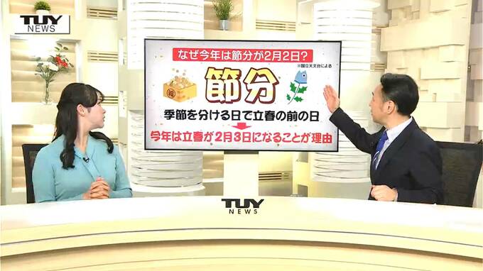 ”豆”知識 今年は節分が2月2日に その理由を解説 国立天文台資料よりひも解く 1年が365日と6時間弱であることが原因だった! To view this video please enable JavaScript, and consider upgrading to a web browser that supports HTML5 video 2025年2月2日(日) 11:28 国内 今年は節分が2月2日。 通常は3日というイメージだが・・・なぜなんだろう? その理由を解説します!! 節分は季節を分けると書く。立春の前の日。※国立天文台資料より 今年はこの立春が動き、2月3日になったことが節分が2日になる理由。