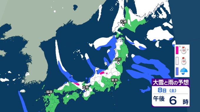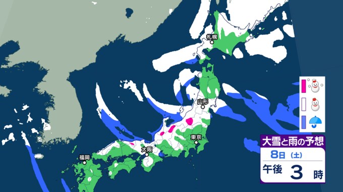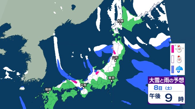 大雪情報 雪が降るのはいつ・どこで【降雪シミュレーション】東北日本海側を中心に8日頃にかけ大雪に 大荒れや大しけとなる所も 24時間降雪量は? 風・波の予想 東北・山形の天気 2025年2月4日(火) 14:51 国内 ■8日(午後)の雪と雨の予報 画像ありの記事を最初から https://newsdig.tbs.co.jp/articles/-/1708454?display=1