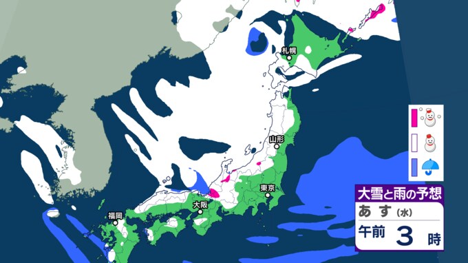 大雪情報 雪が降るのはいつ・どこで【降雪シミュレーション】東北日本海側を中心に8日頃にかけ大雪に 大荒れや大しけとなる所も 24時間降雪量は? 風・波の予想 東北・山形の天気 2025年2月4日(火) 14:51 国内 ■5日(午前)の雪と雨の予報