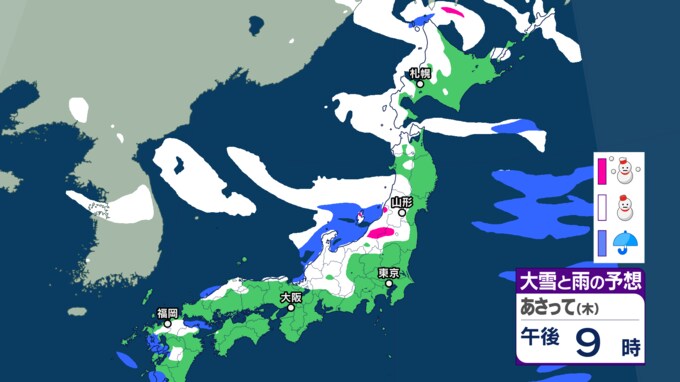 大雪情報 雪が降るのはいつ・どこで【降雪シミュレーション】東北日本海側を中心に8日頃にかけ大雪に 大荒れや大しけとなる所も 24時間降雪量は? 風・波の予想 東北・山形の天気 2025年2月4日(火) 14:51 国内 ■6日(午後)の雪と雨の予報