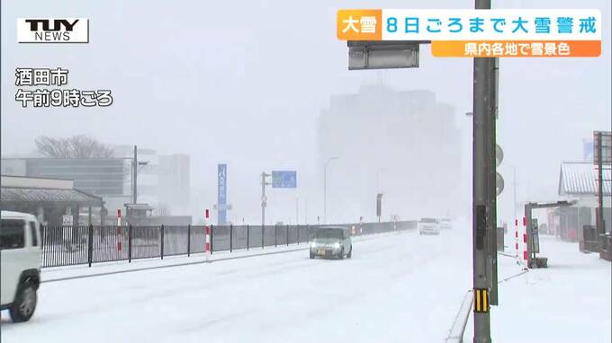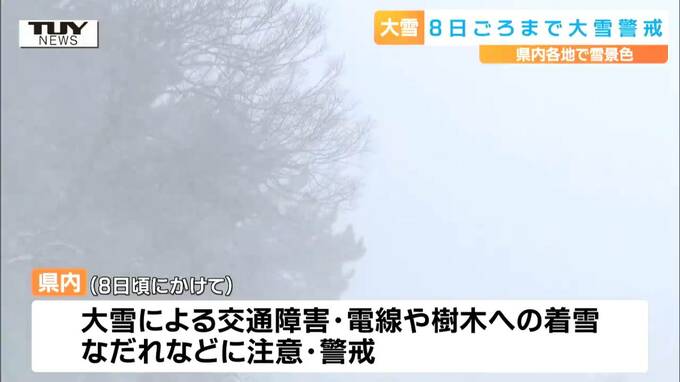 県内では8日頃にかけて、大雪による交通障害や電線や樹木への着雪、なだれなどに注意・警戒してください。