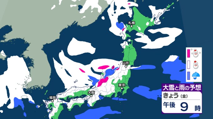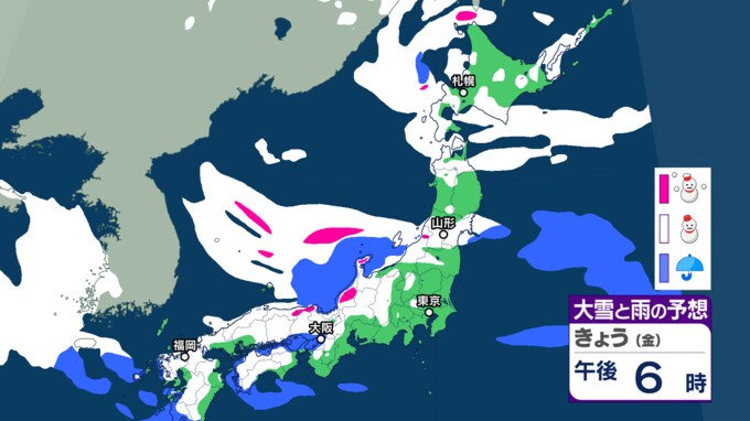 大雪情報 雪が降るのはいつ・どこで?【降雪シミュレーション】寒波襲来 北日本から西日本では9日にかけて大雪に警戒 24時間予想降雪量は東北・北陸地方で80センチ 東北・山形の天気どうなる 気象庁 2025年2月7日(金) 15:30 国内 雪と雨のシミュレーション ■7日(午後)の雪と雨の予報