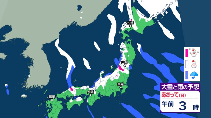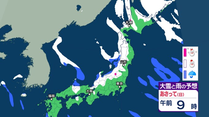 大雪情報 雪が降るのはいつ・どこで?【降雪シミュレーション】寒波襲来 北日本から西日本では9日にかけて大雪に警戒 24時間予想降雪量は東北・北陸地方で80センチ 東北・山形の天気どうなる 気象庁 2025年2月7日(金) 15:30 国内 ■9日(午前)の雪と雨の予報