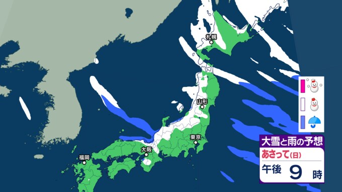 大雪情報 雪が降るのはいつ・どこで?【降雪シミュレーション】寒波襲来 北日本から西日本では9日にかけて大雪に警戒 24時間予想降雪量は東北・北陸地方で80センチ 東北・山形の天気どうなる 気象庁 2025年2月7日(金) 15:30 国内 ■9日(午後)の雪と雨の予報