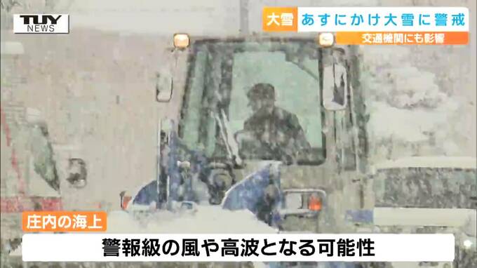 県内では村山、置賜、最上では、あす明け方にかけて、大雪による交通障害や屋根からの落雪、建物や農業施設への被害に警戒し、電線や樹木への着雪、なだれに注意してください。