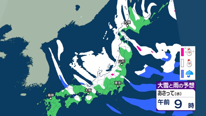 大雪情報 雪が降るのはいつ・どこで?【降雪シミュレーション】19日にかけ北日本から西日本では日本海側を中心に大雪となる所も 平地でも積雪となる所がある見込み 24時間降雪量は 波・風の予想は 東北の天気は 気象庁 2025年2月17日(月) 16:10 国内 19日(午前)の雪と雨の予報