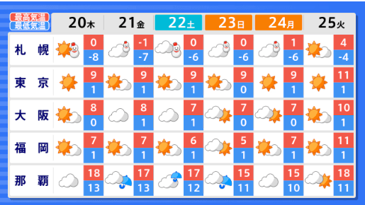 今後の気温はどうなる? 東北地方は向こう1週間程度はかなり低くなる所も その後は平年並か高い日が多くなる見込み 2週間気温予報 全国・山形の天気も 気象庁 2025年2月18日(火) 16:27 国内 ■全国の天気