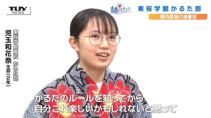 東桜学館高校 かるた部 児玉和花奈 主将 (2年)「百人一首を中学一年生の時に覚えたことがきっかけで、かるたのルールを知ってから自分これ楽しいかもしれんと思って」