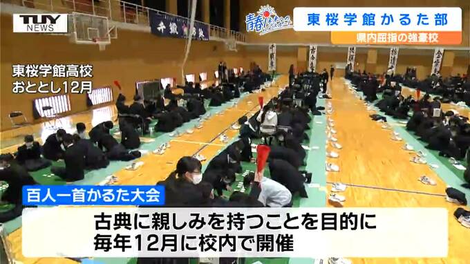 毎年12月に校内で開催されるかるた大会。部員の多くがこの伝統行事をきっかけに入部しました。
