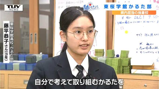 東桜学館高校 かるた部 藤平恭子さん(3年)「自分で考えて取り組むかるたをモットーにしてやっているところが私達かるた部の強みだと思っている」