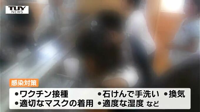 県は、1定点当たりの人数が流行の基準である1.0人を超えていることから、いまだ流行は続いているとして、引き続き、ワクチンの接種、石けんでの手洗い、換気、適切なマスクの着用、室内の適度な湿度を保つことなど、感染対策を呼びかけています。