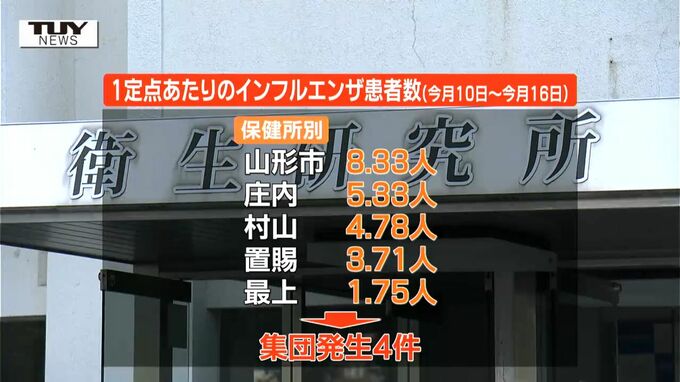 保健所別でみると、1定点あたりの患者数は、山形市保健所で8.33人となり、「警報レベル」は終息しました。