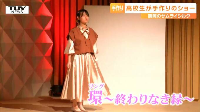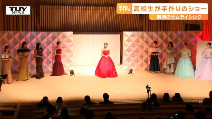 このシルクガールズコレクションは、鶴岡シルクの魅力を多くの人に知ってもらおうと、県立鶴岡中央高校で服飾を学ぶ「シルクガールズ」が16年前から行っているイベントで、衣装の製作もモデルもすべて生徒たちによる、手作りのファッションショーです。